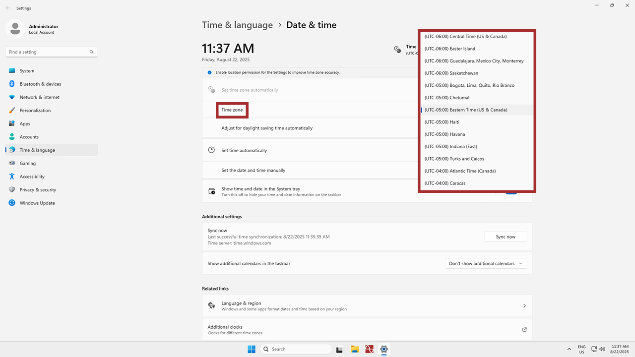 To finish up, click on the Time zone option to open up a dropdown menu, and from there, select the preferred time zone. Now youโre free to choose whatever time zone you please!