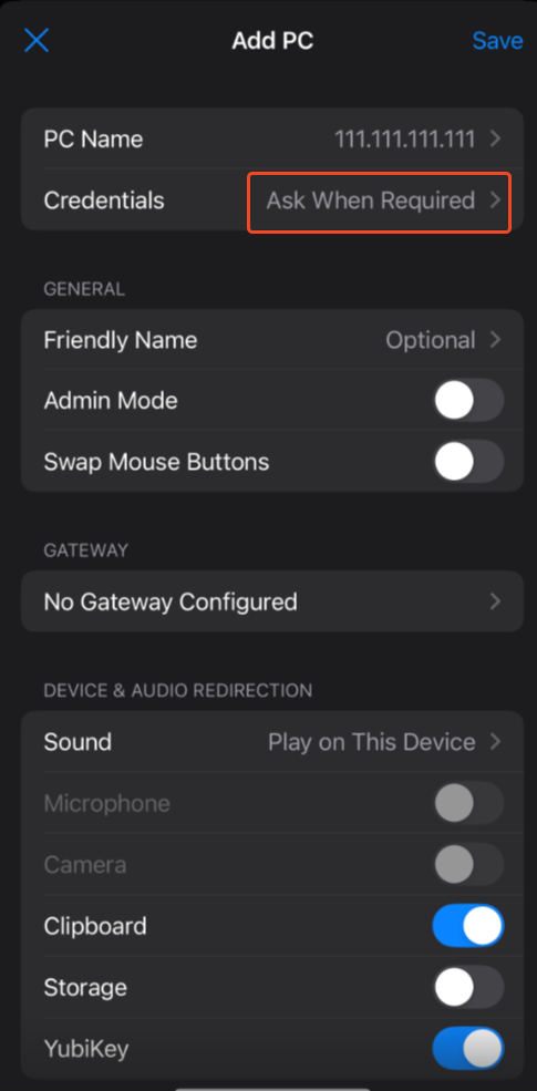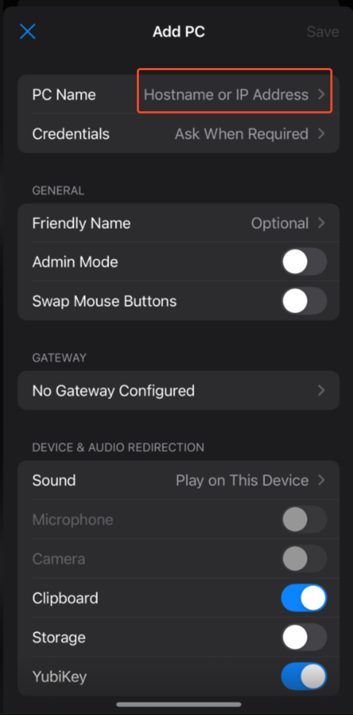 Back on the main Add PC screen tap Save in the top-right corner.
