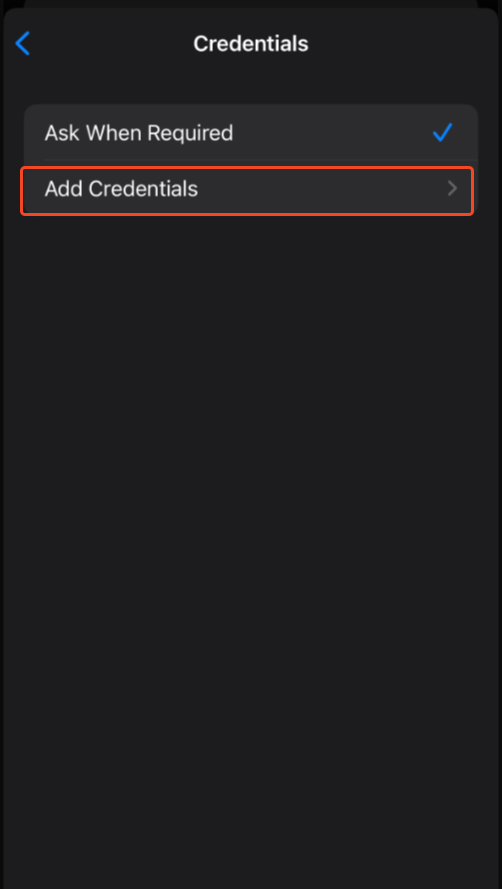 Tap on Credentials then tap Add Credentials