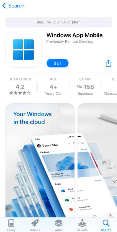 The Remote Desktop client for iOS/iPad isn’t available for download anymore and it’s replaced by Windows App Mobile.