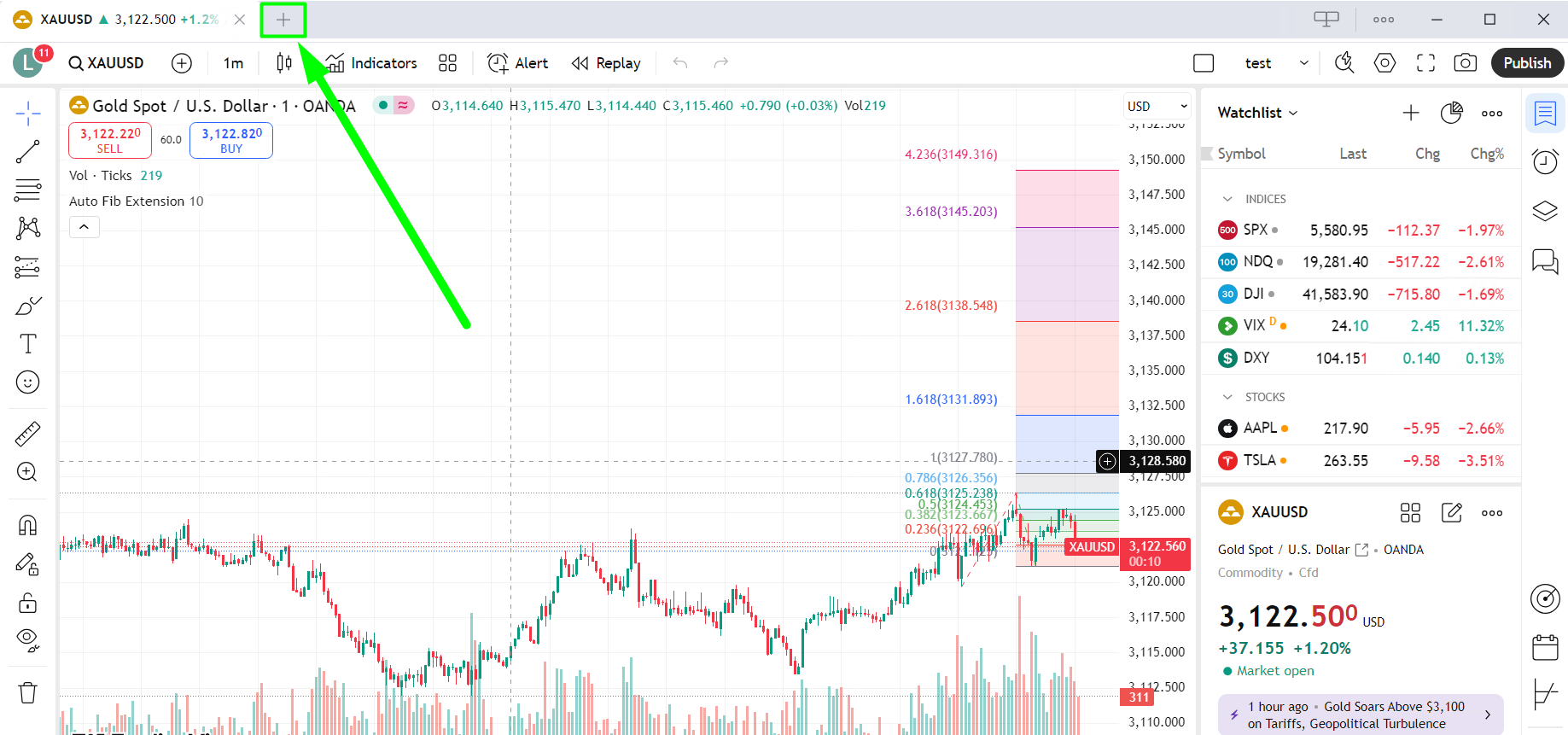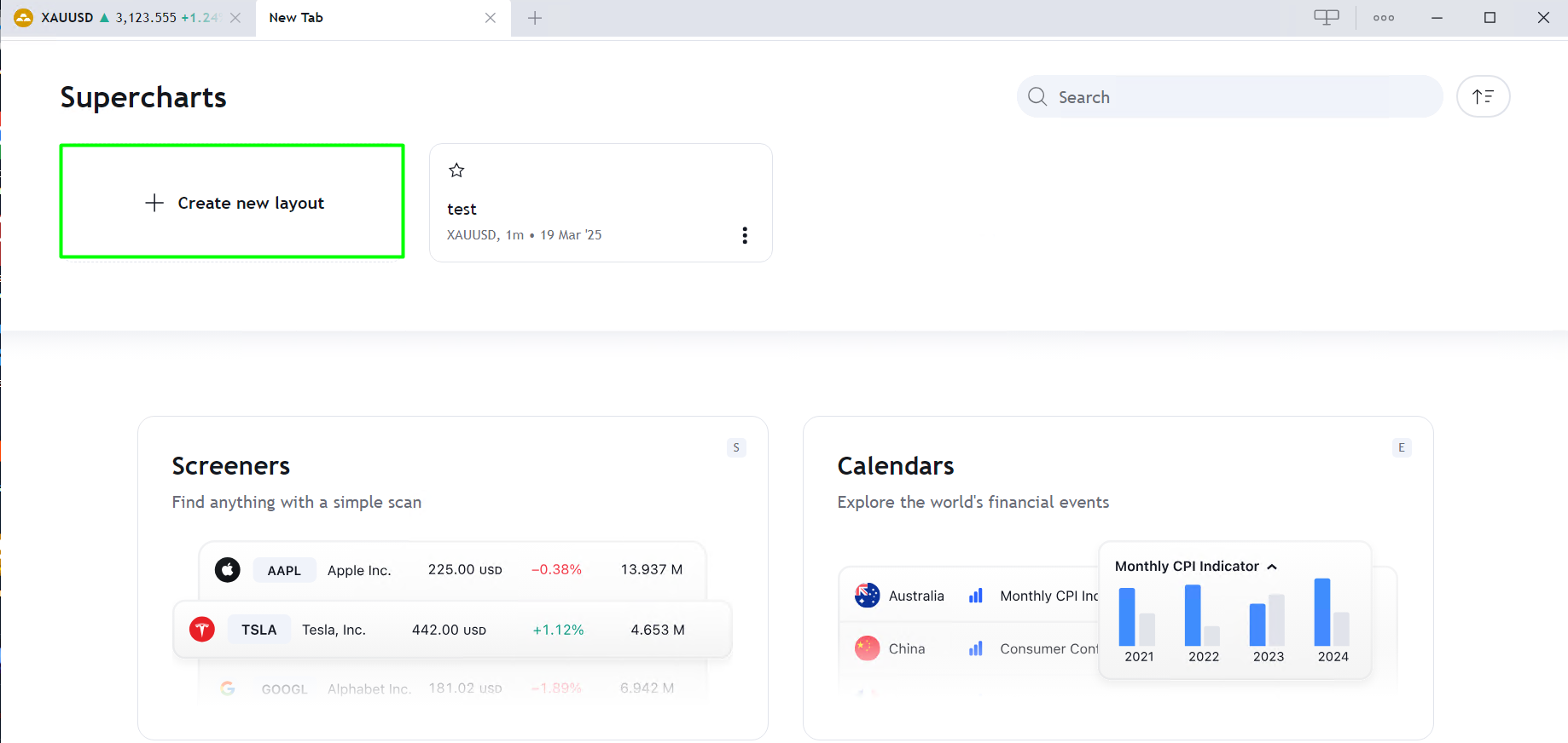 To create new chart layout- simply click on + (PLUS) button in the tabs menu: