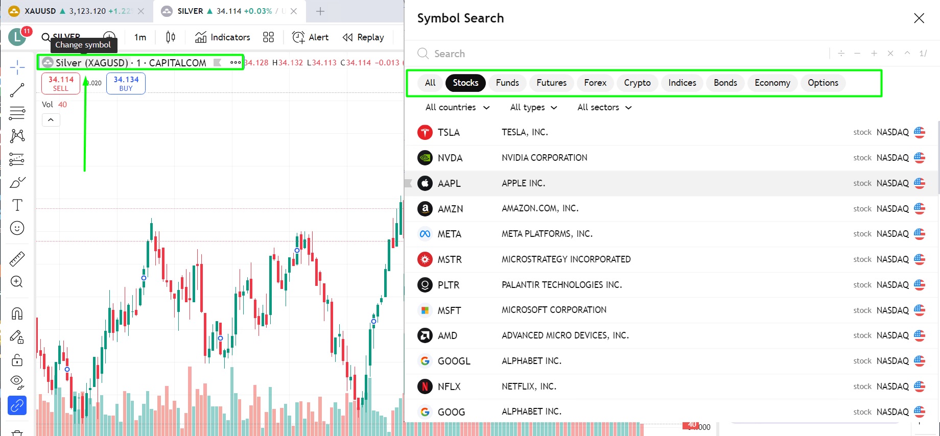 You will then have an option to choose the symbol you’d like to add to a chart, just like we chose Apple Inc. here: