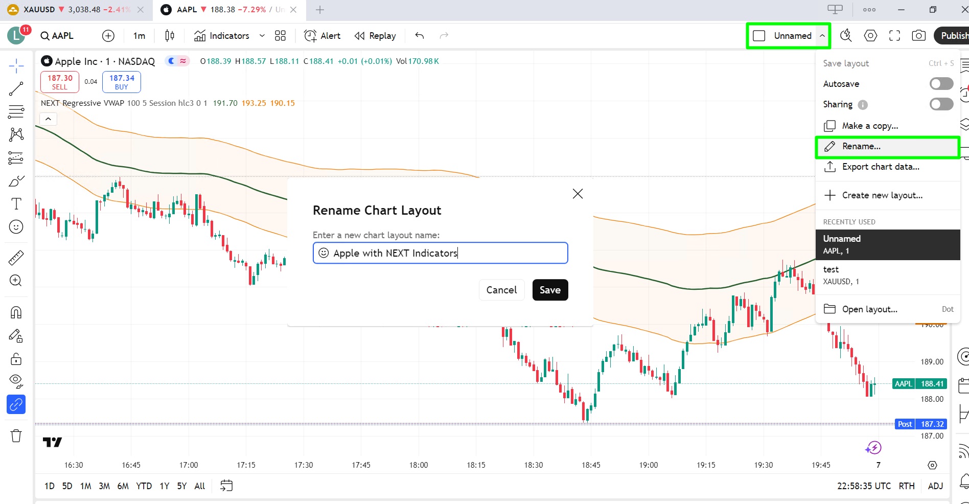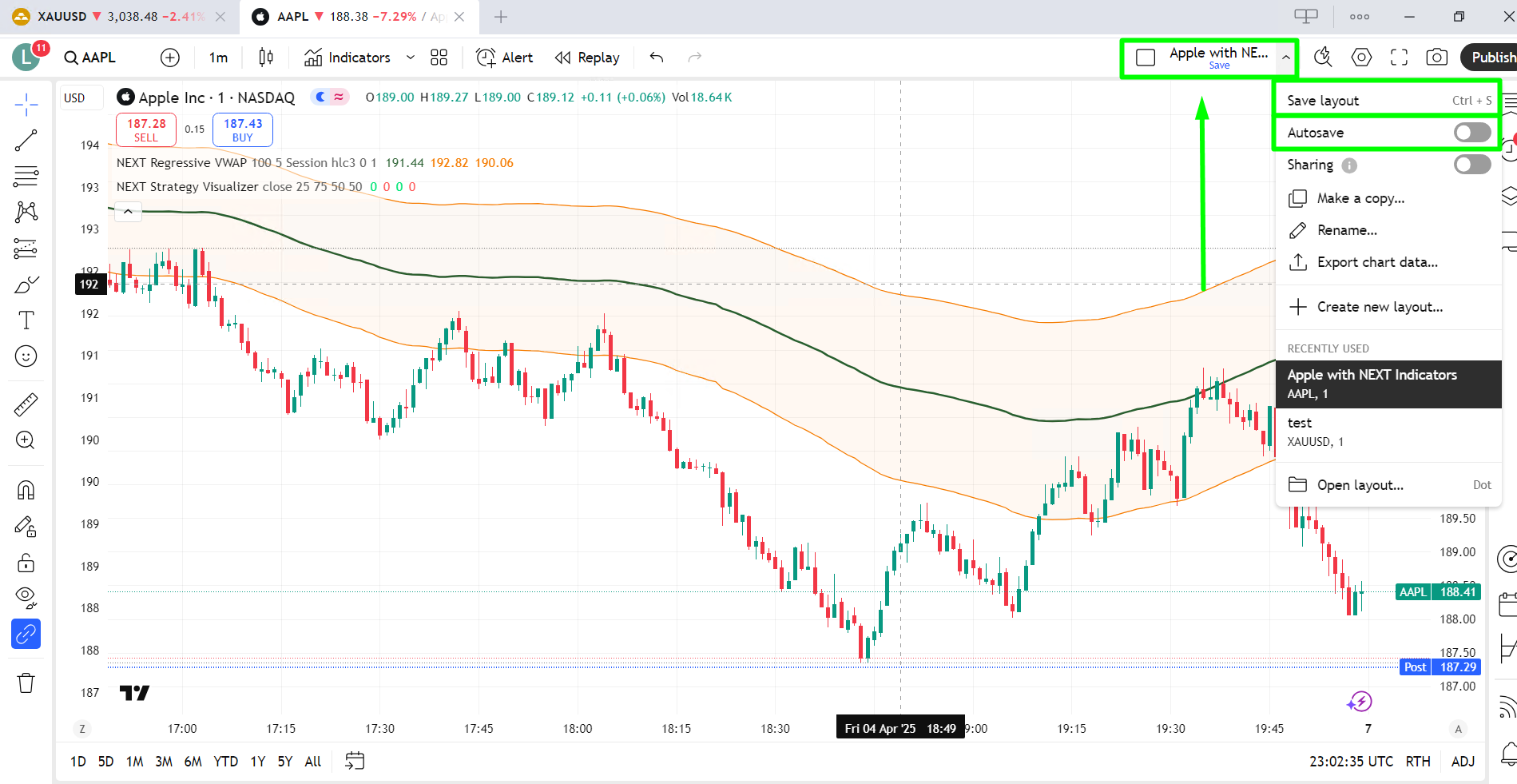 And you use the same tab to save the layout you created with all the indicators and strategies added. There is also an option to enable Auto-Save after every change you make: