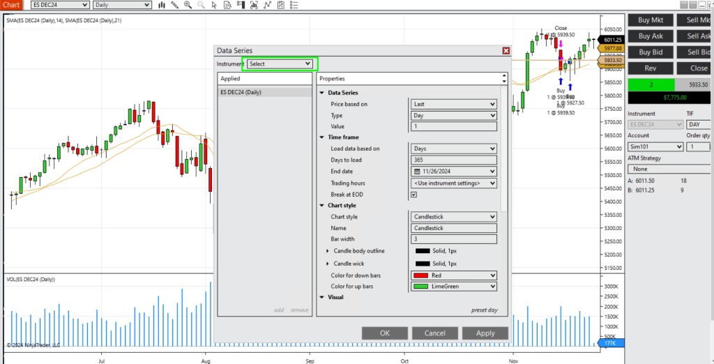 In the following steps, we’ll walk through how to add multiple instruments to a chart panel in NinjaTrader, ensuring you can maximize this functionality to enhance your trading workflow.