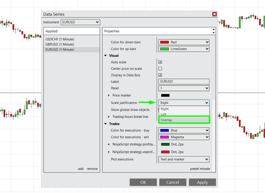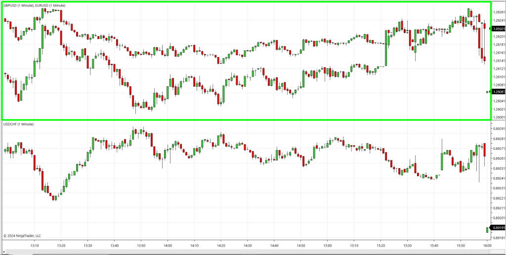 Overlay instruments: Visualize two or more instruments on the same price scale for direct comparison.