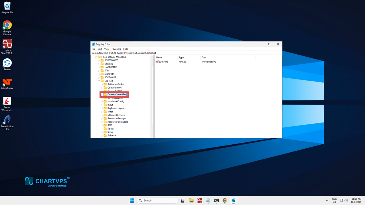 - Once inside that folder, go for CurrentControlSet.