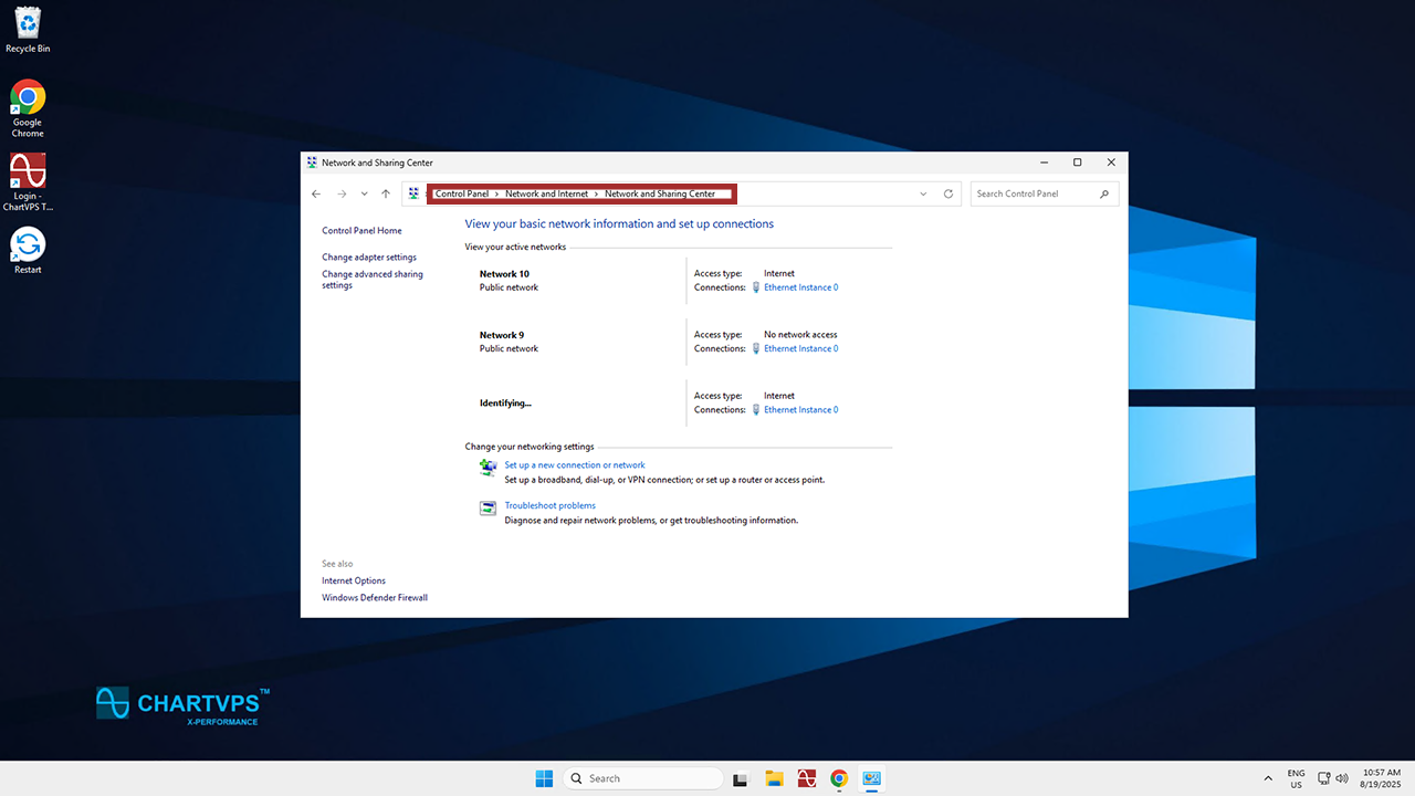Network and Sharing Center: Use the Windows search method from the Ping Command section to find and open the Control Panel. From there, head on over to the Network and Internet section, then the Network and Sharing Center. This is where you can view your network connections and their status. This is a quick way to validate that the server is properly connected.