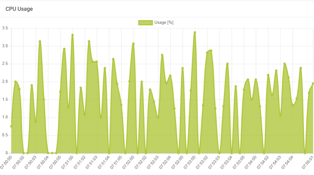 CPU Usage – The CPU Usage graph displays the percentage of processor utilization. Spikes in this chart indicate periods of high computational demand, often caused by intensive workloads or background processes. Consistently elevated CPU usage may suggest the need to optimize running applications or allocate additional processing resources.