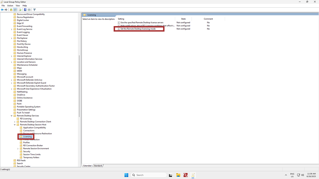 And finally, click Licensing. To configure Licensing Mode, double-click on Set the Remote Desktop licensing mode.