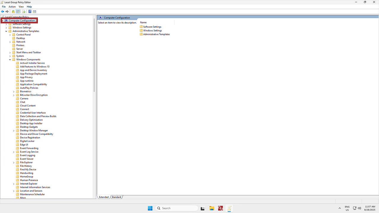 It’s time to find the RDS Licensing Settings. Be warned that we’ve got to go through quite a few sections! Start with Computer Configuration on the left.