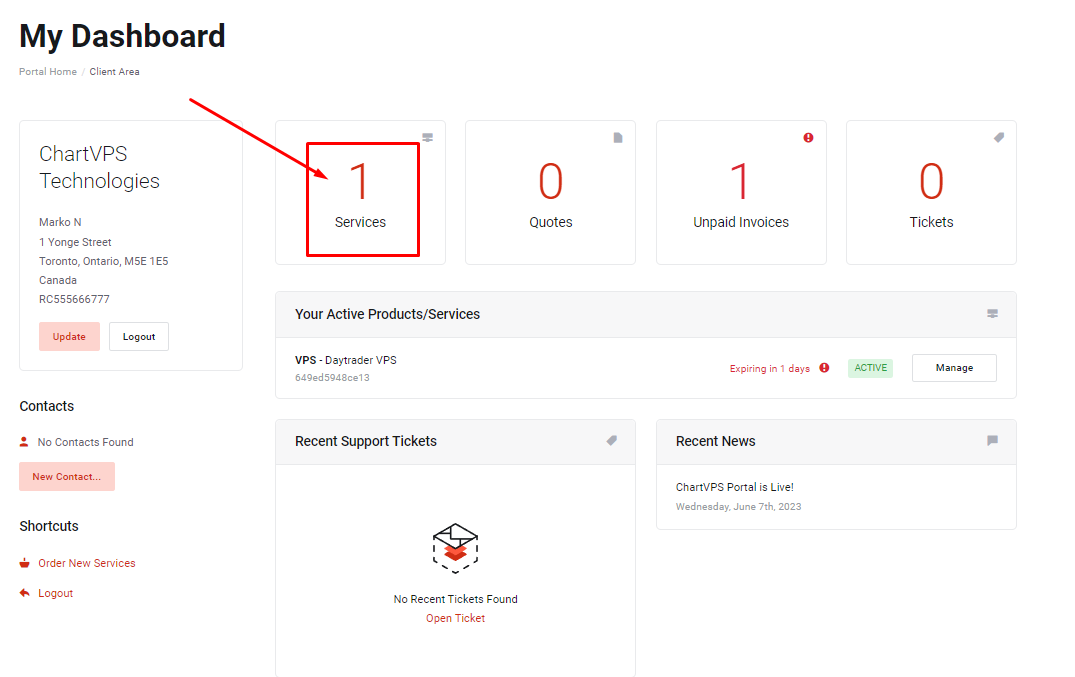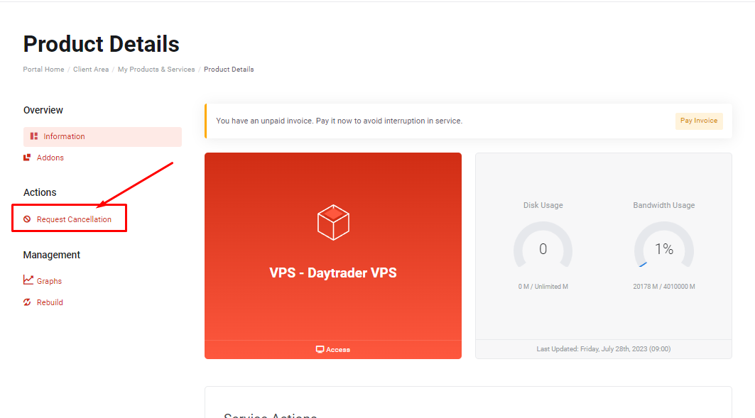 If you do not have access to your portal yet, there are alternative methods to request cancellation. You can easily do so through our chat support or by using the contact form on chartvps.com.