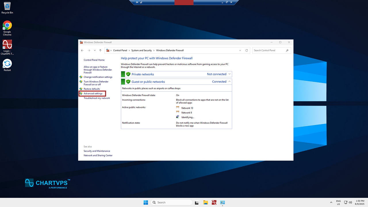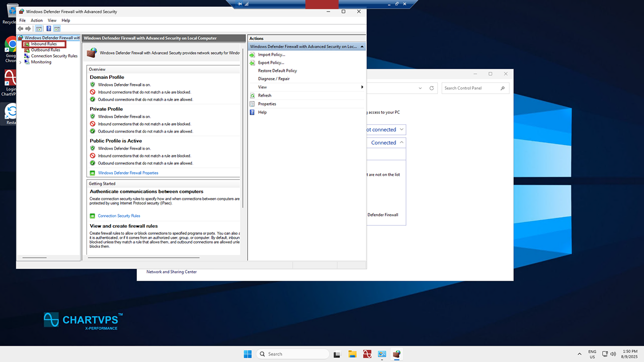 Now youโre in the Advanced Settings. From there, look left again and select Inbound Rules.
