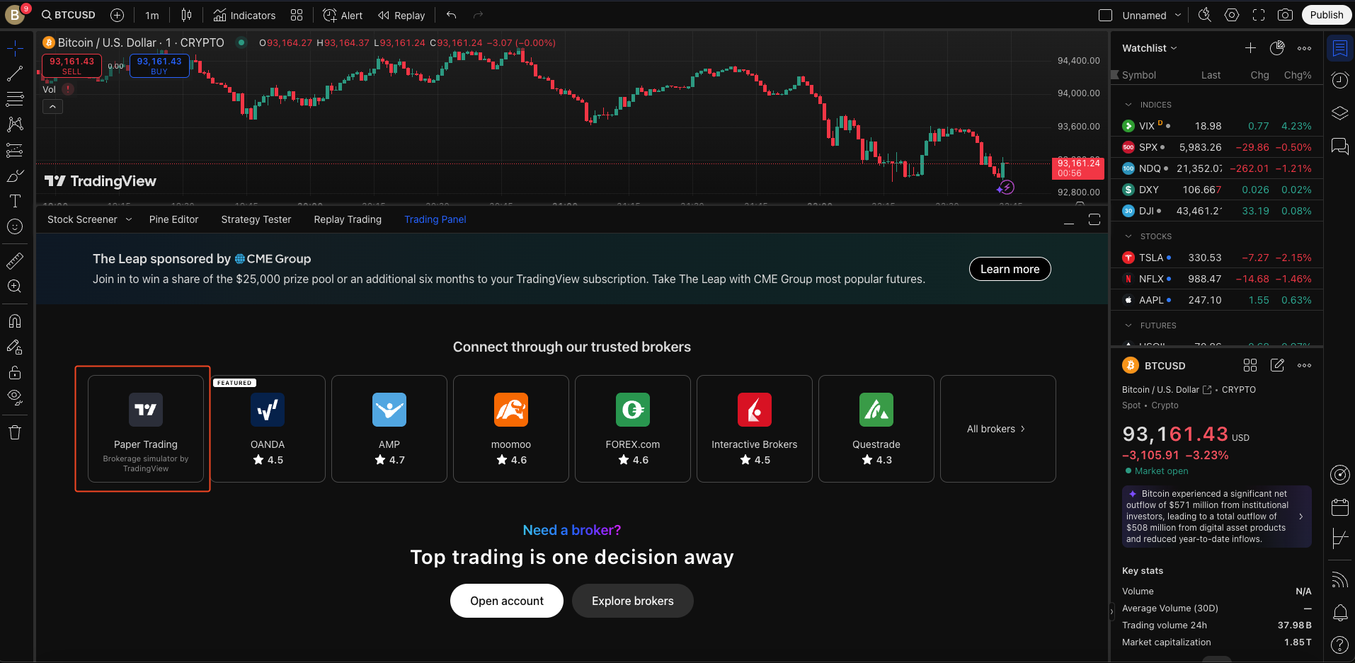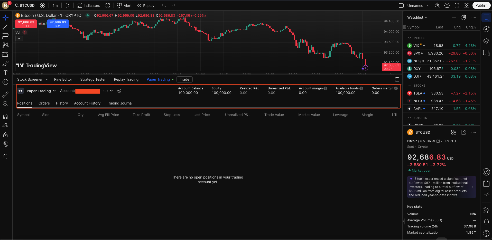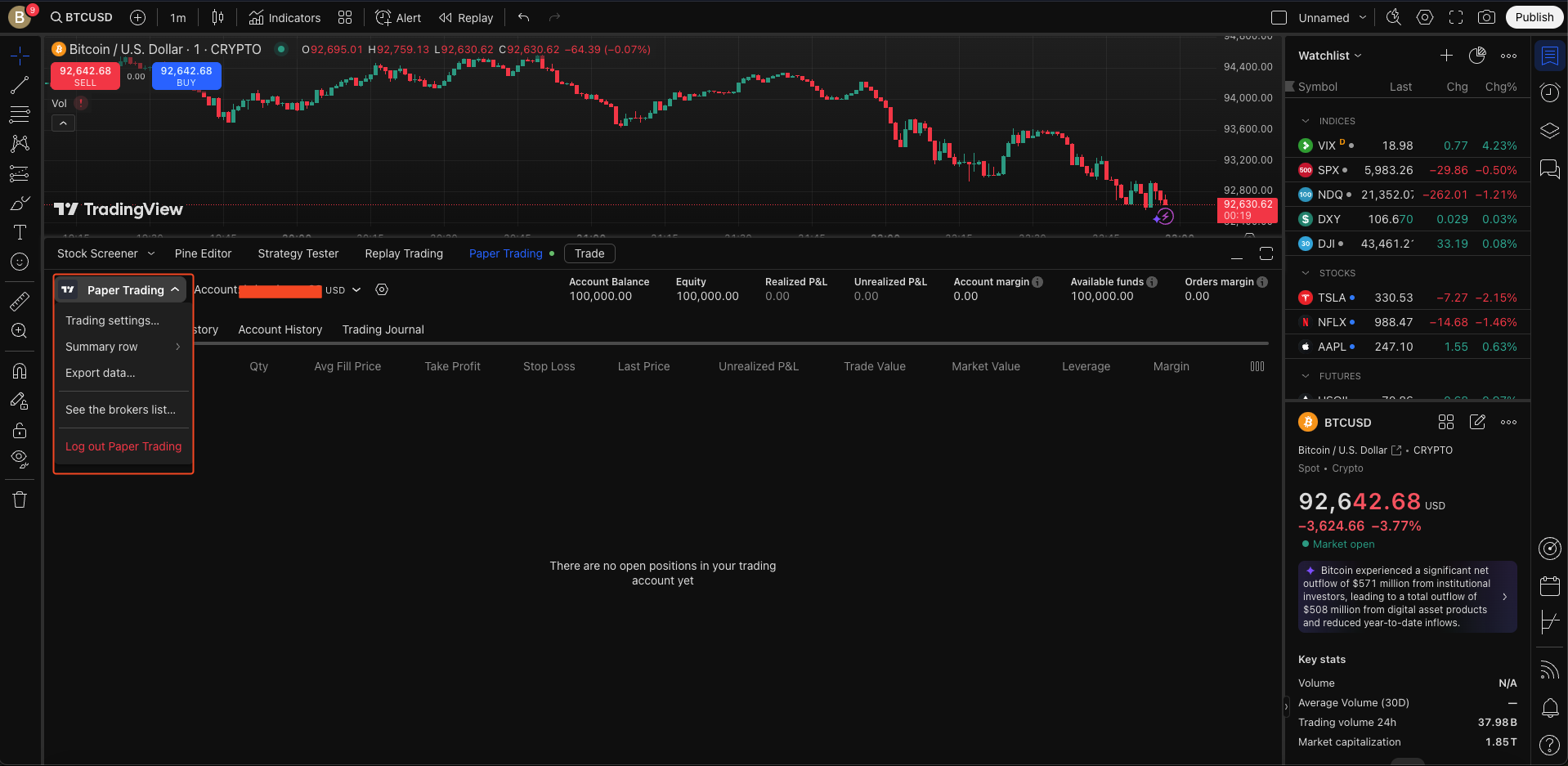 TradingView’s Paper Trading feature is a useful tool for traders of any experience level, as it lets you simulate trading in real-time market conditions without using any actual money.