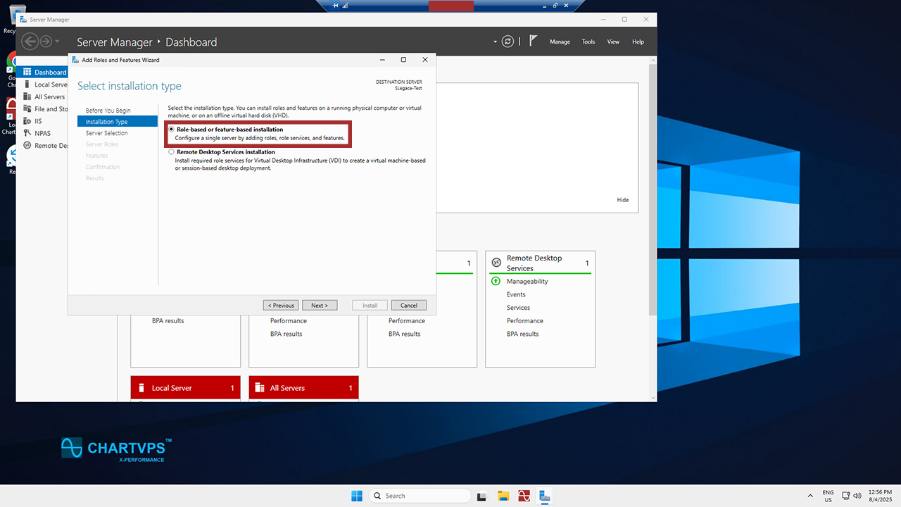 Click Next. Now it’s time to pick your installation type! Go ahead and click on Role-based or feature-based installation, then hit Next.
