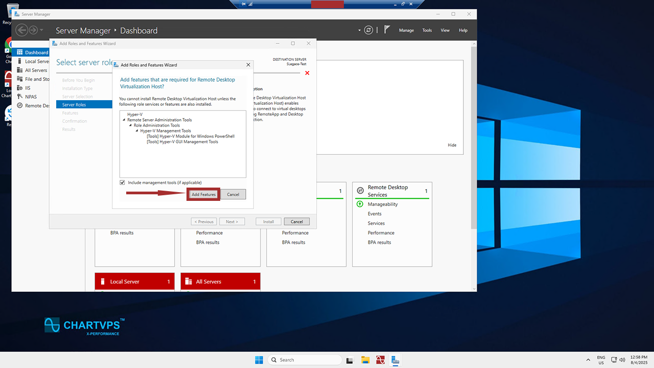 Whenever you check a box, the Add Roles and Features Wizard will appear. All you’ve got to do is click Add Features to continue.