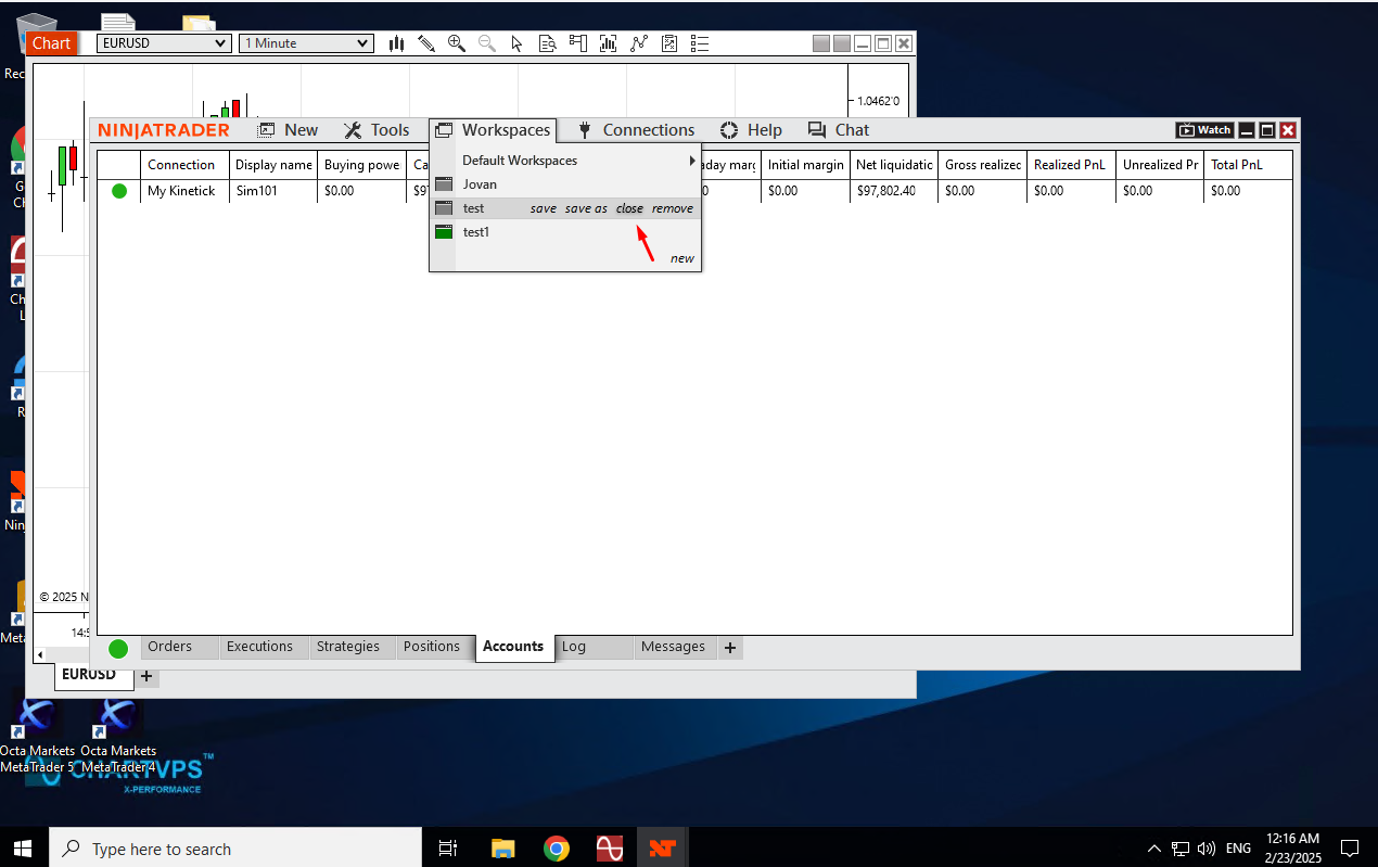 NinjaTrader allows you to have multiple workspaces open at once, giving you flexibility to manage different setups. However, even if a workspace isn’t currently in use or visible, it continues running in the background. This means it still uses valuable system resources, such as memory and processing power. If the workspace contains complex charts, indicators, or other heavy data, this can lead to a noticeable slowdown in the performance of your platform. To keep NinjaTrader running smoothly, it’s a good idea to close any workspaces you’re not actively using.