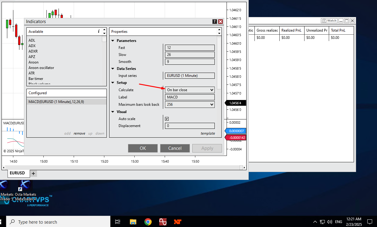 Action: To optimize performance in NinjaTrader, it’s recommended to set your indicators and data series to calculate "On Bar Close" or "On Price Change" rather than "On Each Tick." Calculating on each tick requires the platform to process every single price movement, which can use a lot of system resources and lead to slowdowns.