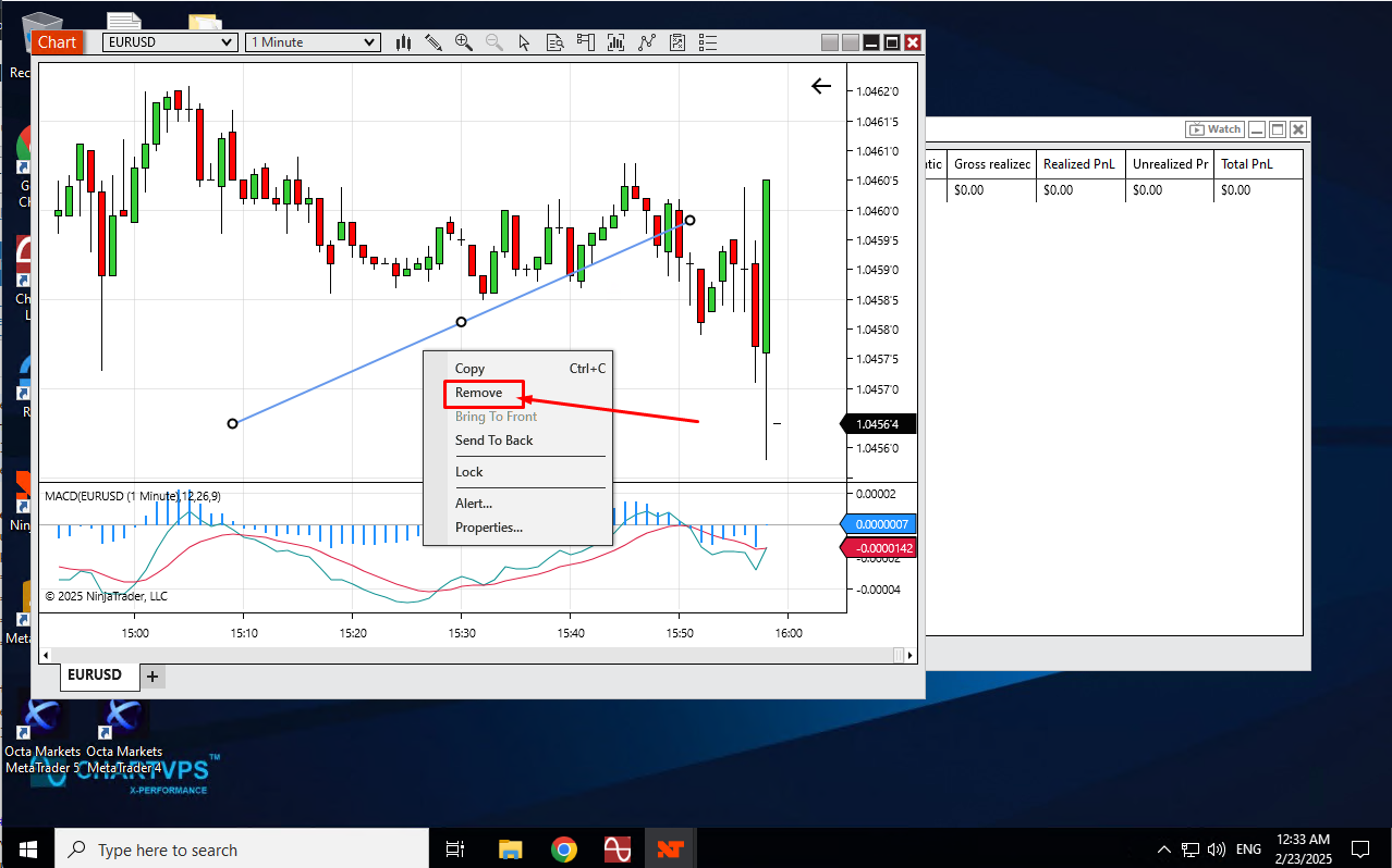 Action: It’s a good practice to regularly clean up your charts by removing unnecessary drawing objects and indicators. For example, if you’ve drawn multiple trendlines but only need one, delete the extra ones to free up resources. To remove an indicator, right-click on the drawing object that you wish to delete and select "remove" from the context menu list This will help reduce the strain on your system and improve chart rendering and overall performance.