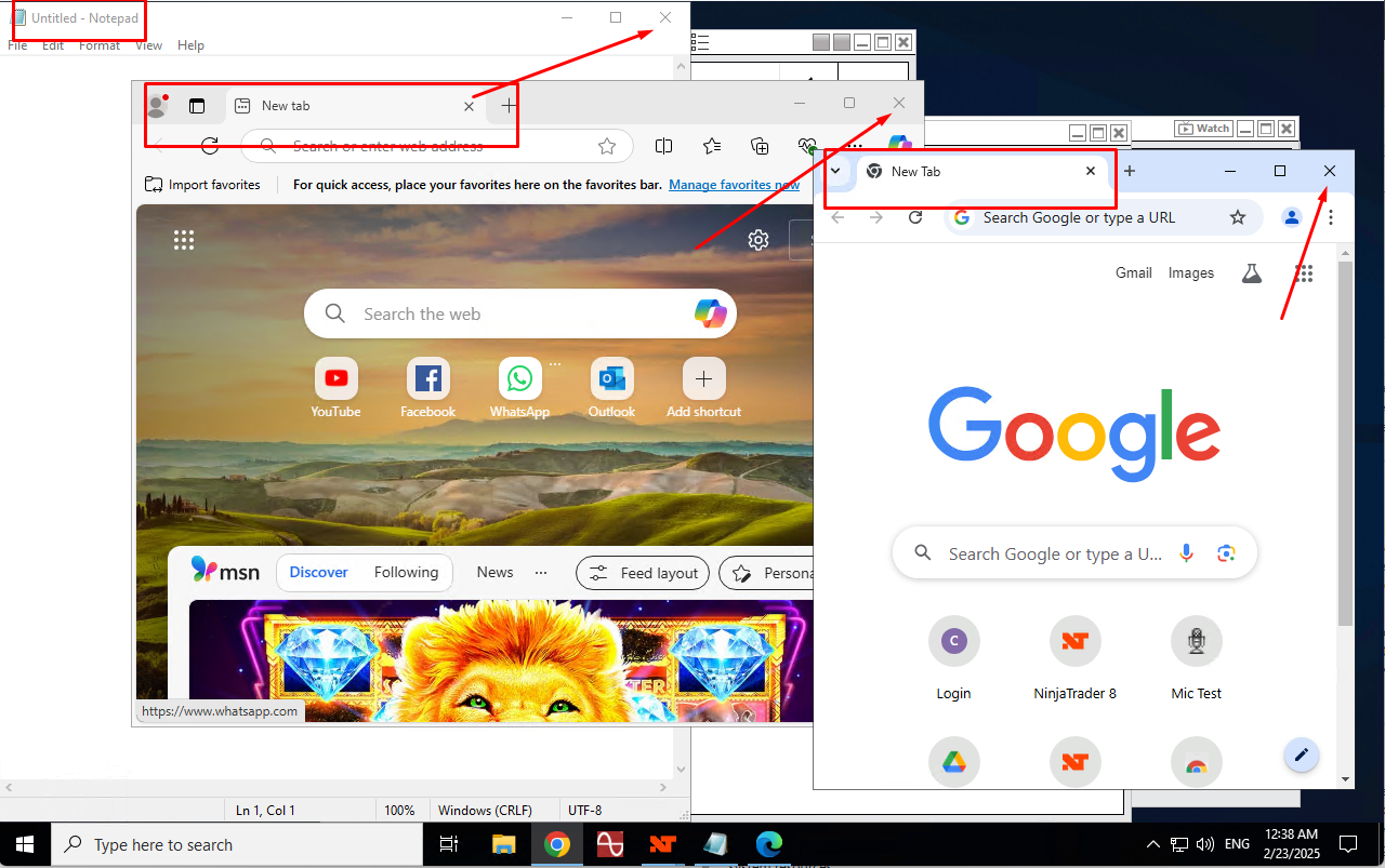 Action: To ensure smoother performance in NinjaTrader, it’s a good idea to close any unused applications before launching the platform. For example, if you have 10 browser tabs open but only need 2, close the remaining tabs. This will free up CPU and memory resources, allowing NinjaTrader to run more efficiently without competing for system resources.