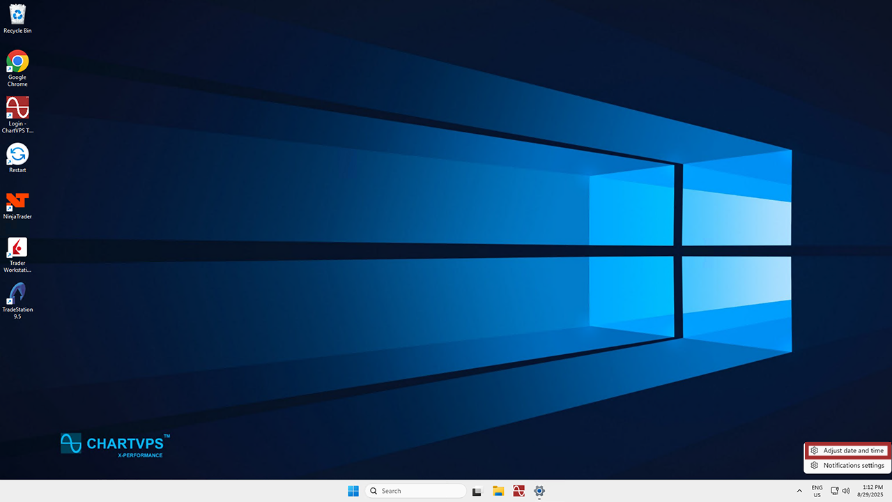 If you closed the menu from the previous step, right-click on the clock again in the taskbar and select Adjust date/time.