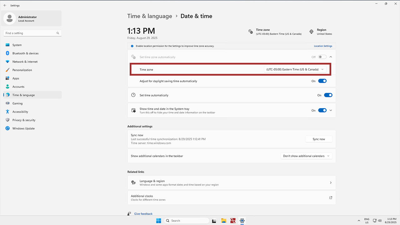 Verify and Set Correct Time Zone