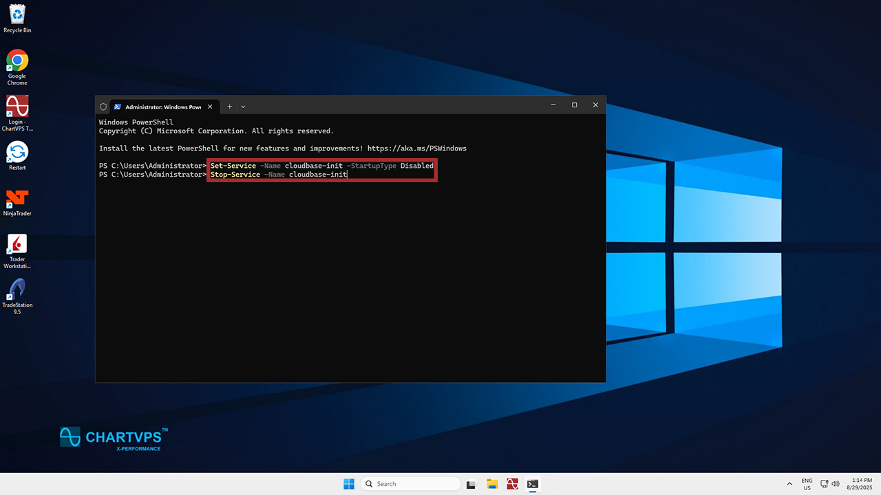 Open Windows PowerShell and Disable Cloudbase-init