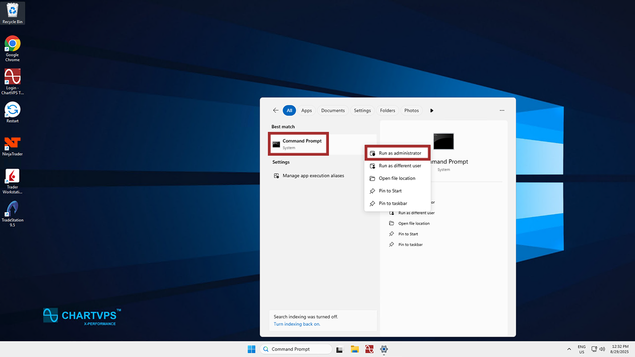 This time, open Command Prompt as Administrator. To do that, search for “Command Prompt” in the Windows search bar, then right-click it and select Run as administrator.