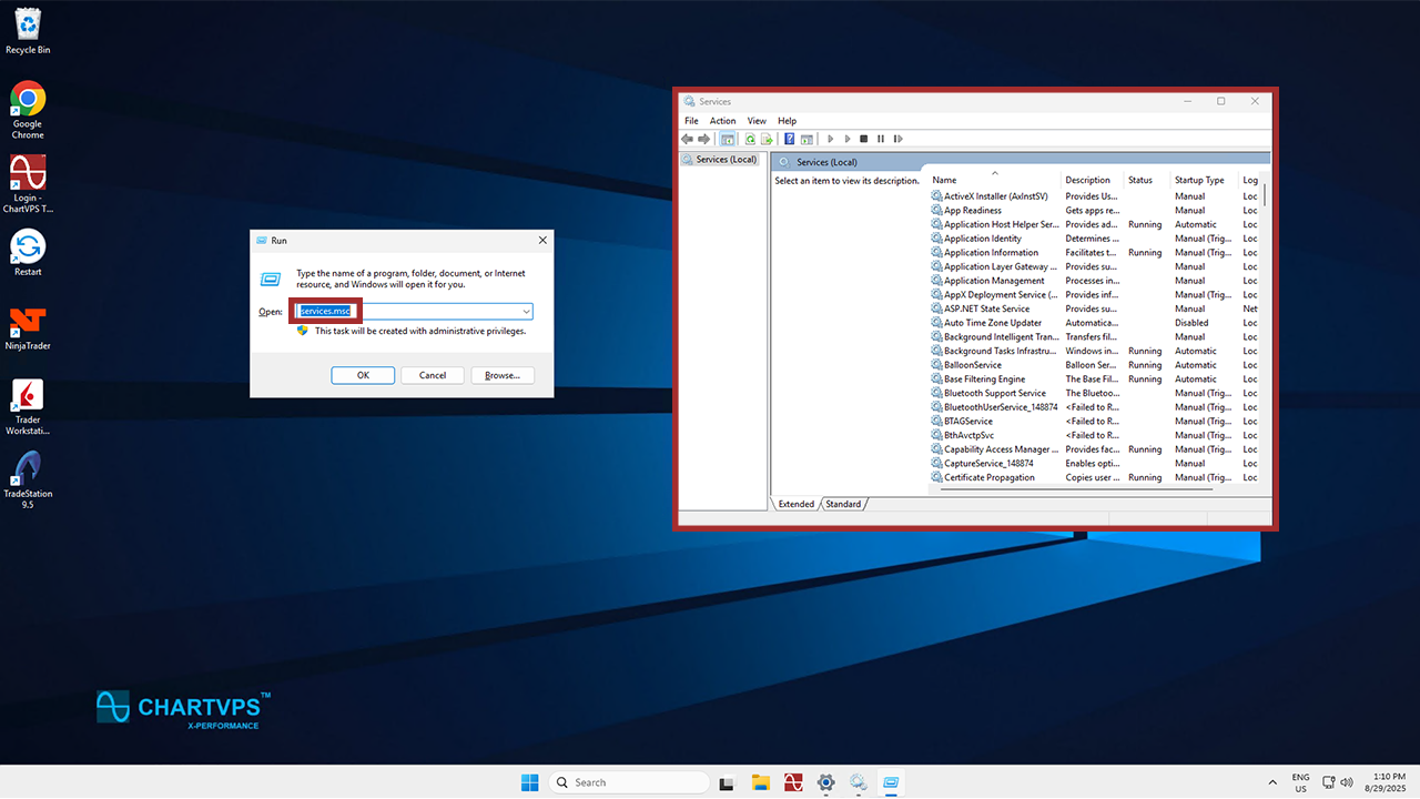 Off the bat, press Windows + R, then type “services.msc” and press Enter to open the Services window.