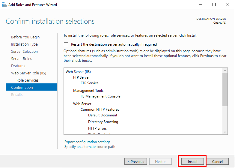 Click the Install button on the Confirmation page.