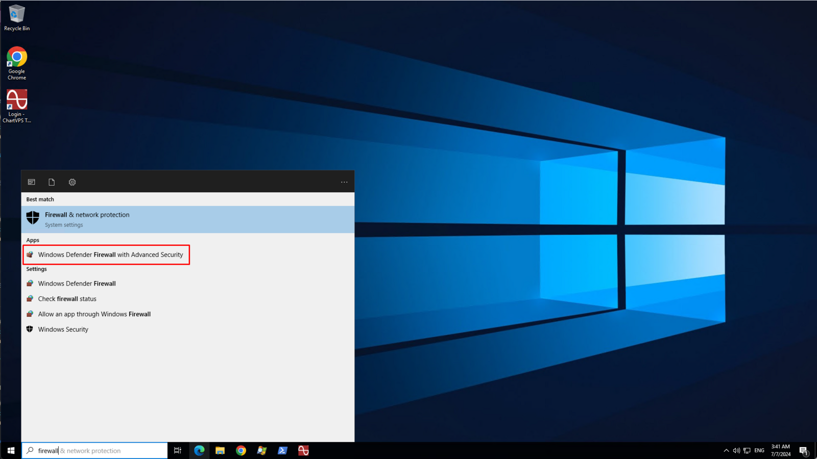 Type firewall in the Windows Search Bar then click Windows Defender Firewall with Advanced Security