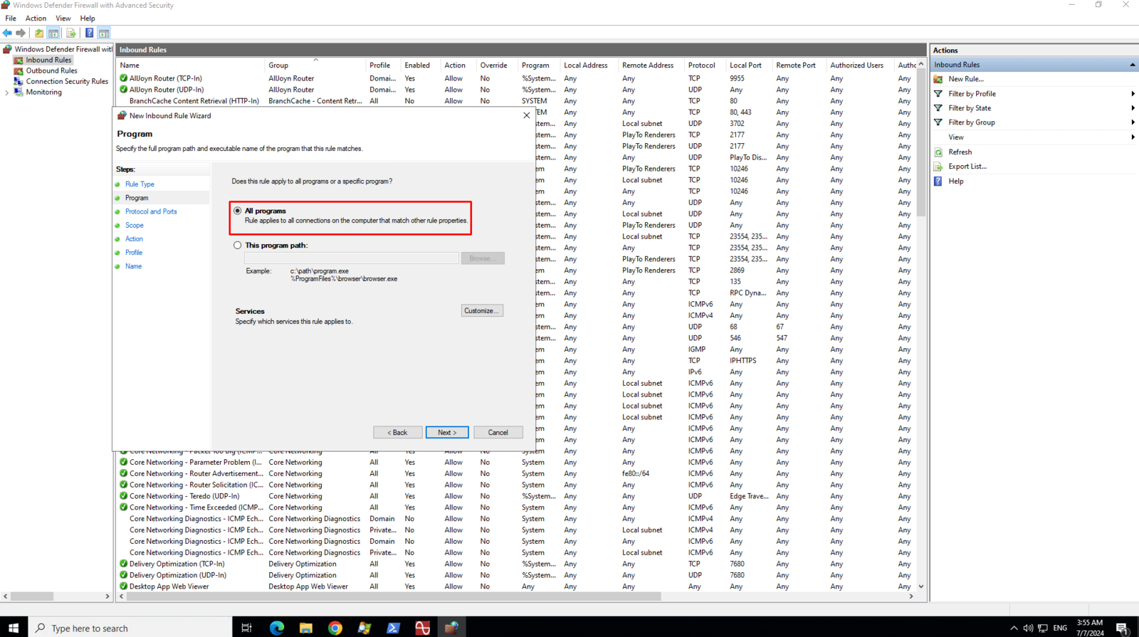 Creating an Inbound rule