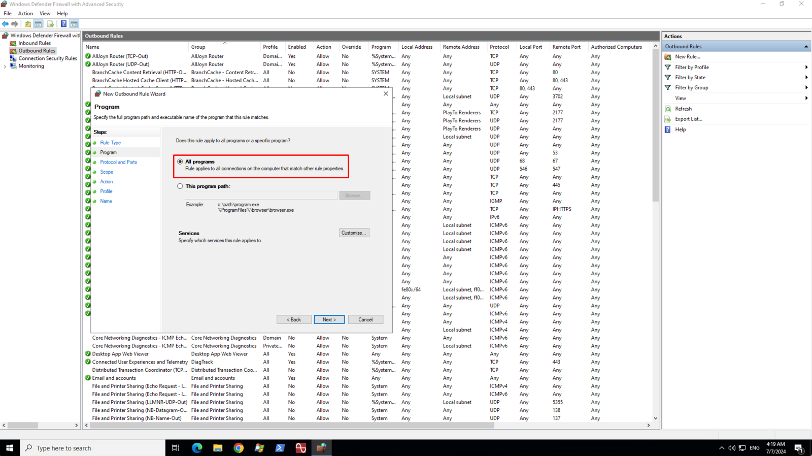 Creating an Outbound rule