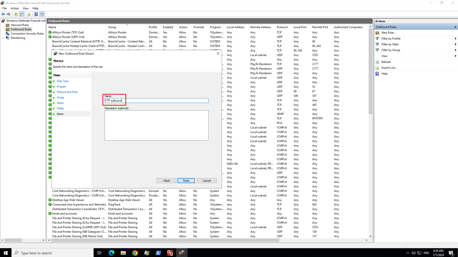 Enter a name or description for your FTP outbound rule