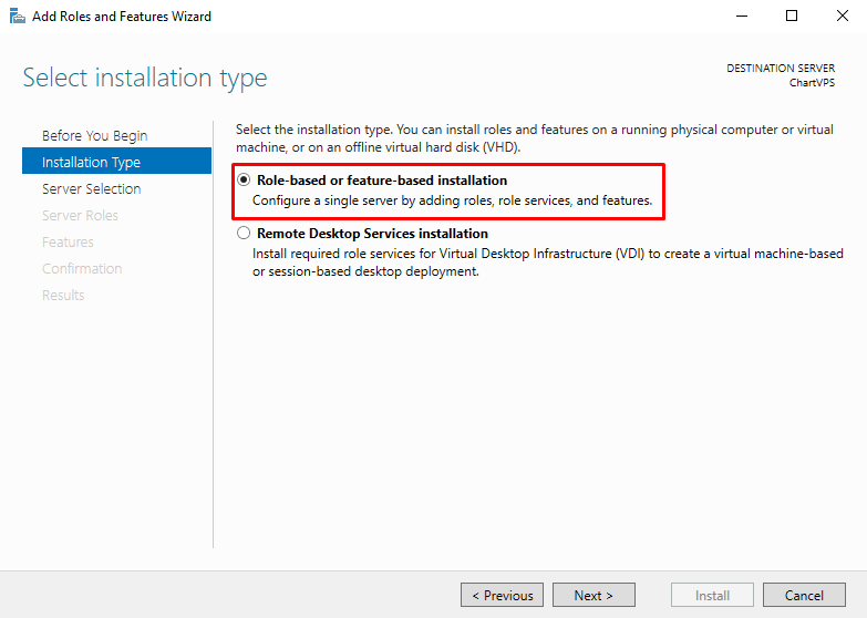 On Installation Type, make sure that Role-based or feature-based installation is selected