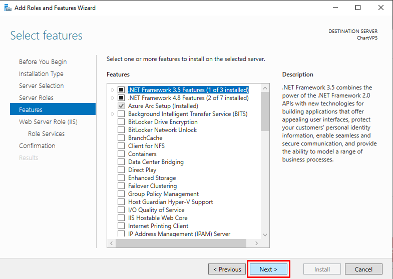 On the Features page, click Next