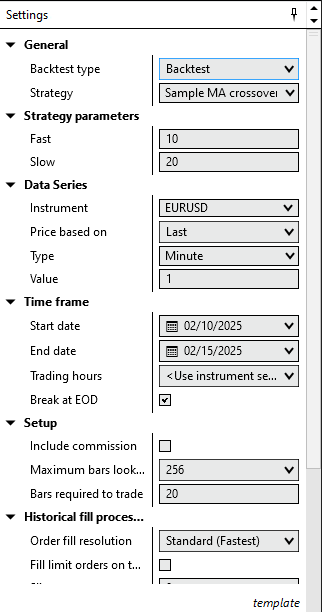 Start & End Date: Define the period for the backtest.