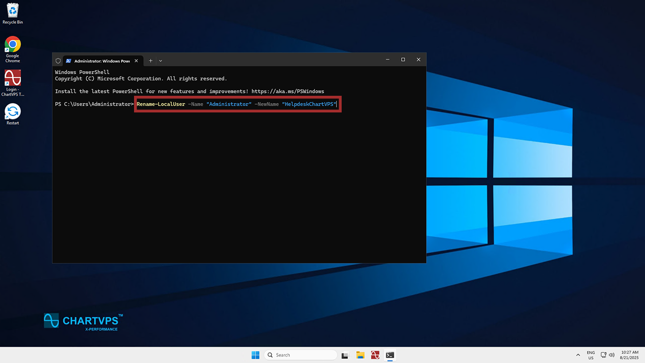 Rename-LocalUser -Name "Administrator" -NewName "HelpdeskChartVPS"