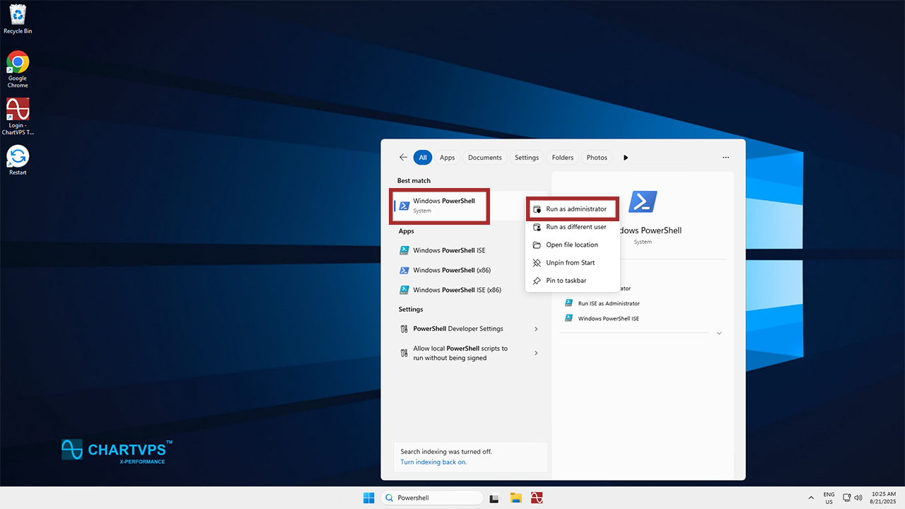 From the get-go, you’ll be launching PowerShell with administrative privileges. In the Windows Search bar, go ahead and type “PowerShell.” Then, right-click the application and click Run as administrator. This gives you additional privileges in the program!