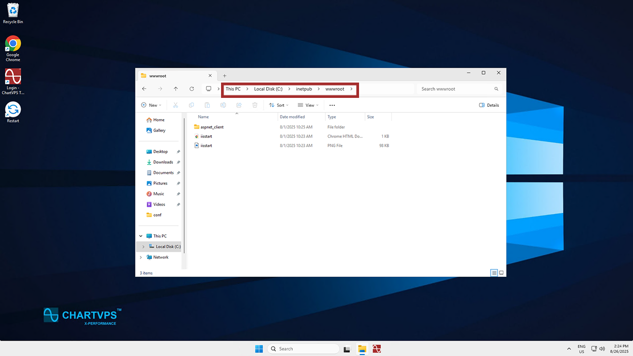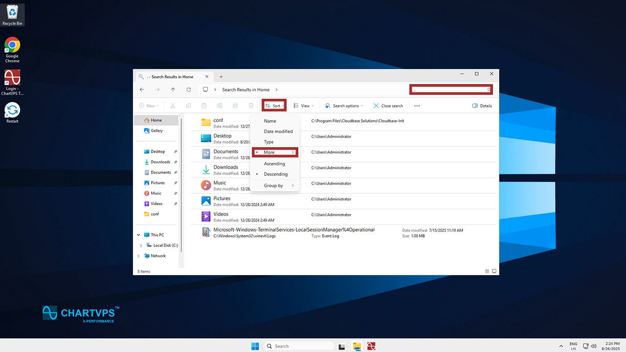 the ChartVPS Portal to access the server’s desktop.