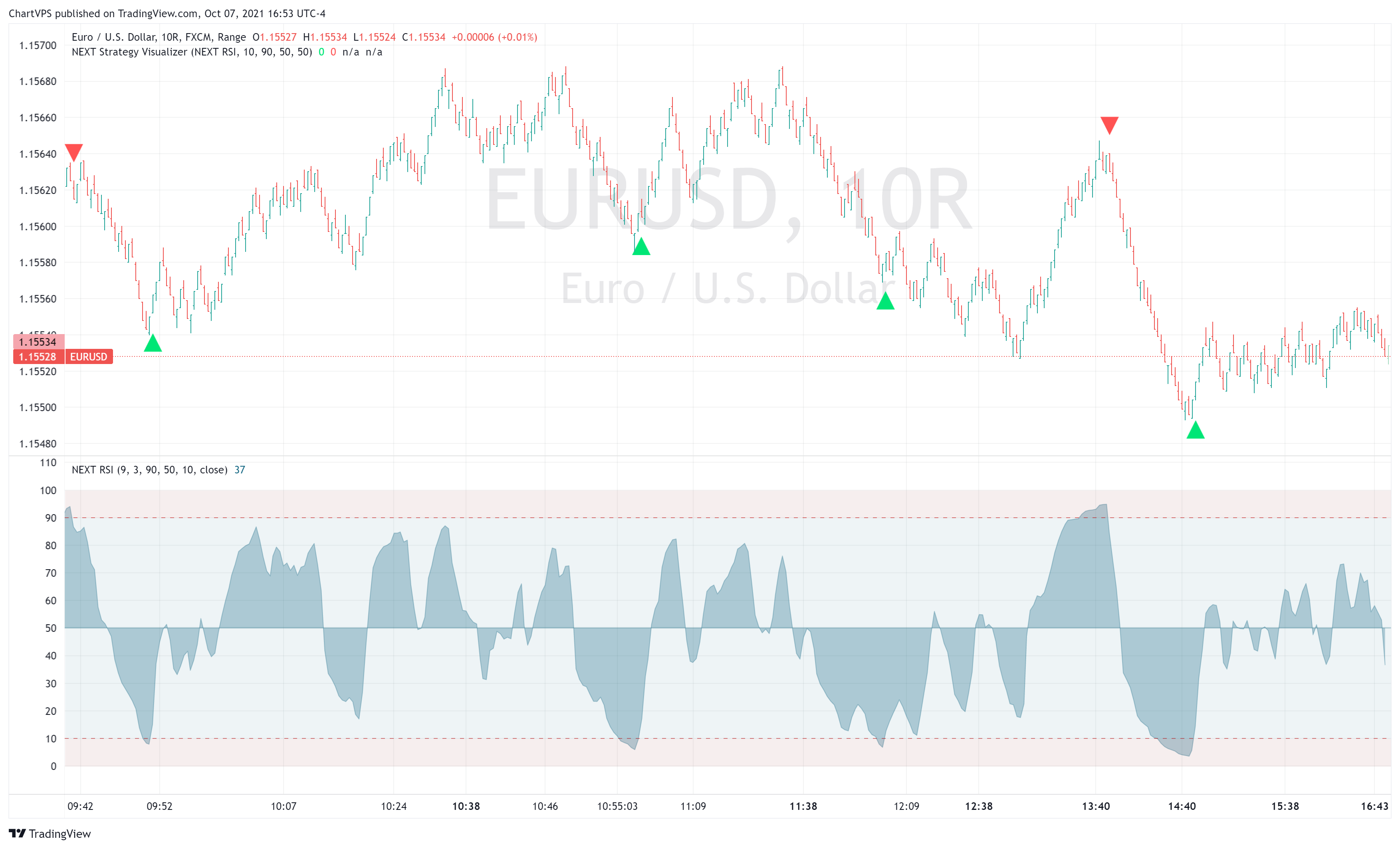Important: In order to effectively use the NEXT Strategy Visualizer you must attach both the indicator you wish to visualize (NEXT RSI in our example) and the NEXT Strategy Visualizer indicator itself.