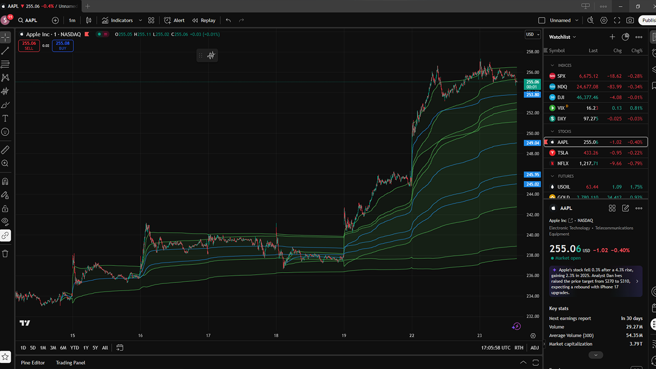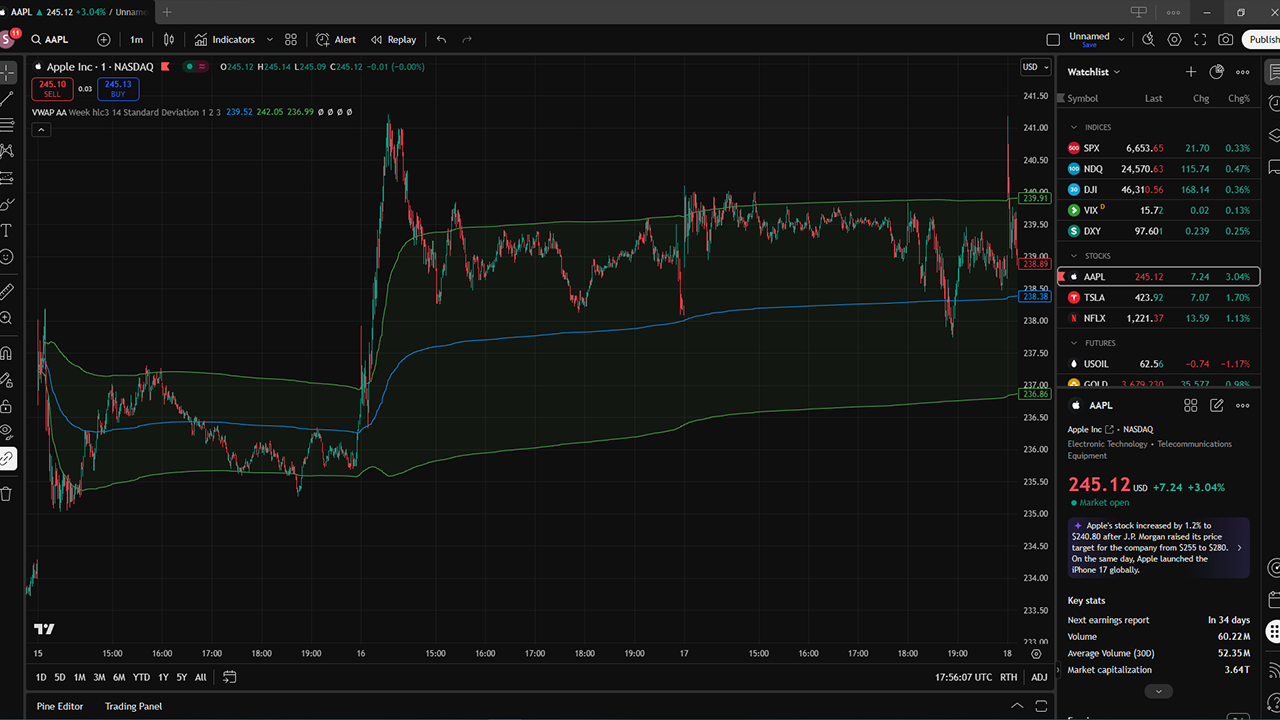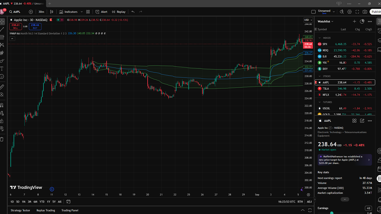 You can see an example of AVWAP (anchored to the August high for AAPL) in TradingView below:
